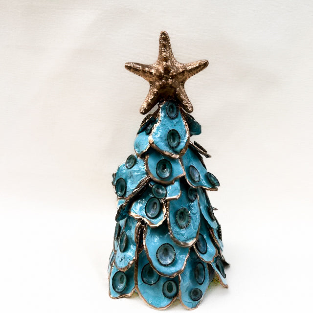 Bring the beauty of the ocean into your home with the Aqua Allure Tree: a unique Christmas tree covered in oyster shells and brightly painted with blue, accented with turquoise limpets and a golden starfish topper. Add an extraordinary touch to the holiday season!