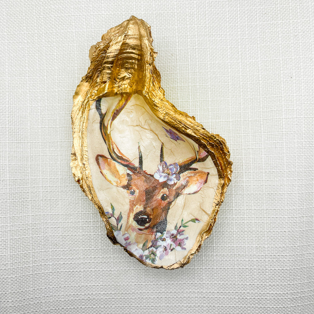 Every decoupage oyster is one-of-a-kind, so your shell might not be this exact shell, but will be one of the same size and type of shell.