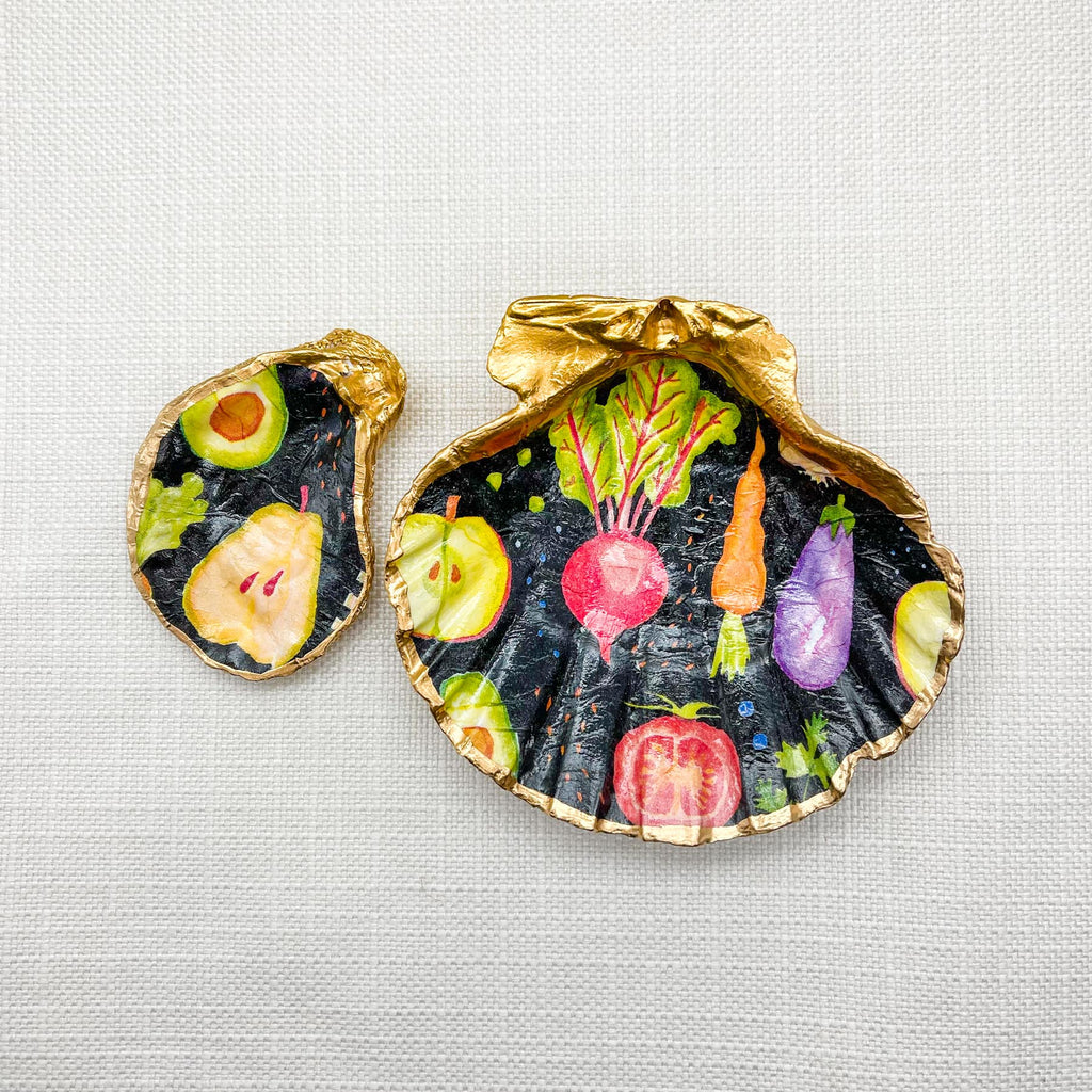 Every decoupage oyster is one-of-a-kind, so your shell might not be this exact shell, but will be one of the same size and type of shell.