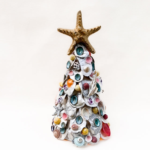 Celebrate the holidays with the Shellebration Tree! Our one-of-a-kind handmade tree is made of oysters and adorned with beautiful pearl and pastel-colored shells. Experience a unique holiday with this special piece!